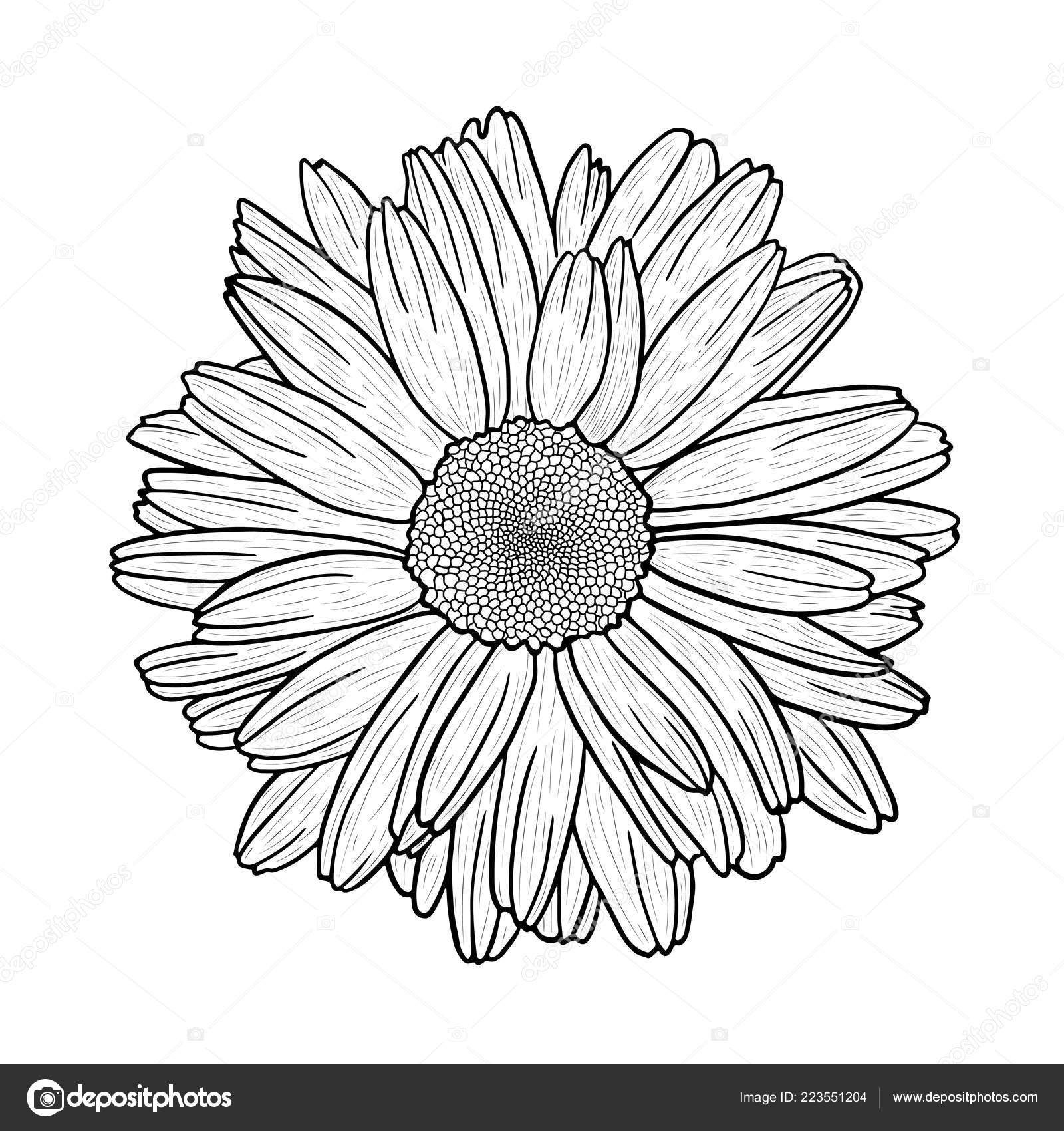 Chamomile Hand Drawn Vector Illustration Floral Ink Pen Engraved Sketch Black And White Clipart Realistic Daisy Flower Freehand Drawing Isolated Monochrome Design Element Sketched Outline Stock Vector Image Art Alamy