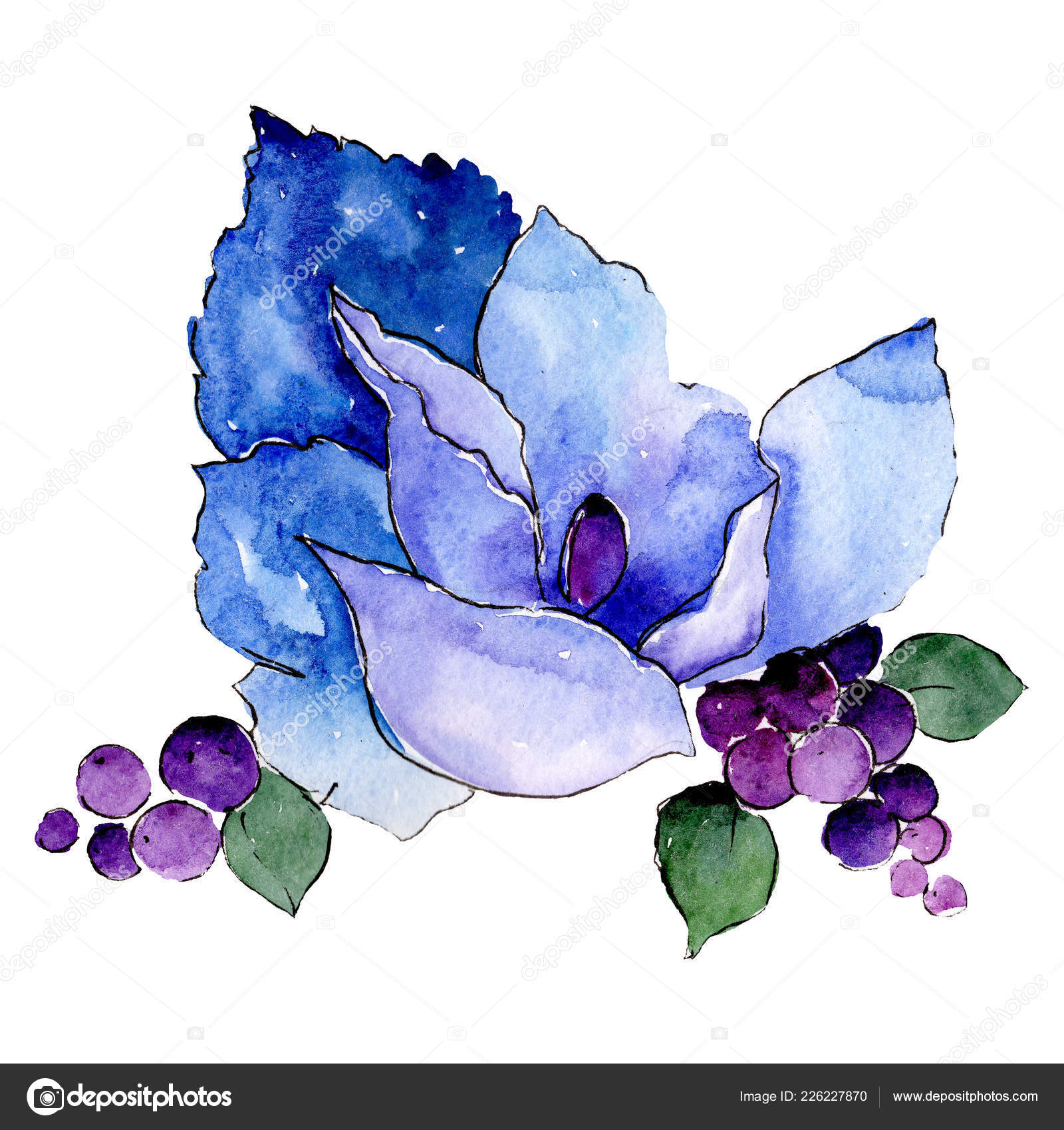 Blue Flower Watercolor Drawing Illustration Geometric Illustration Painting Watercolour Floral Aquarelle Garden Clip Art On White Background Stock Photo Alamy