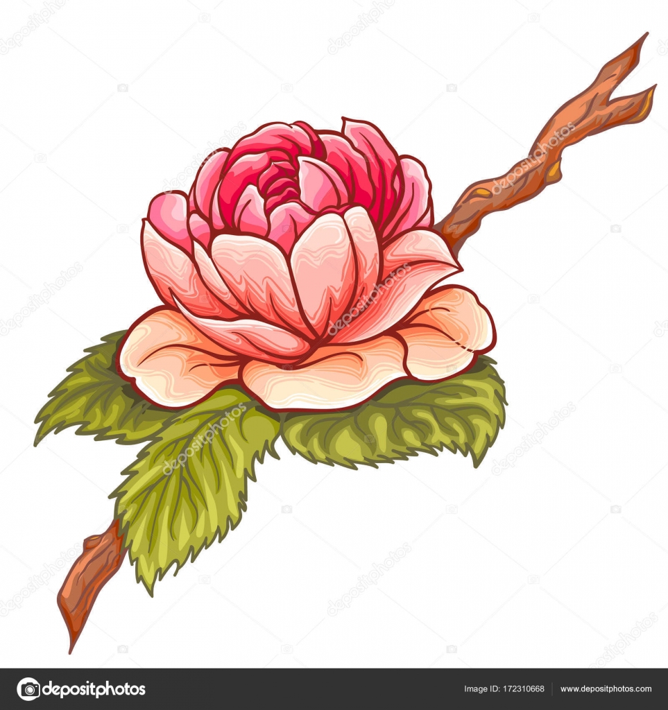 Camellia Flower On Branch With Leaves Botanical Illustration Design Element For Greeting Cards Invitations Stock Vector C Legeida 172310668