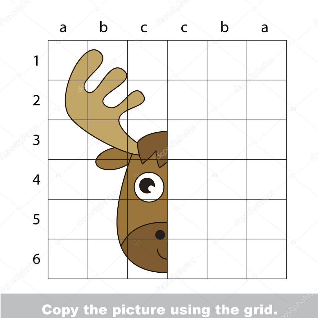 Vector Kid Educational Game With Easy Game Level For Preschool Kids Education Finish The Simmetrical Picture Using Grid Sells The Funny Drawing Kid School Drawing Tutorial For Elk Head Premium Vector
