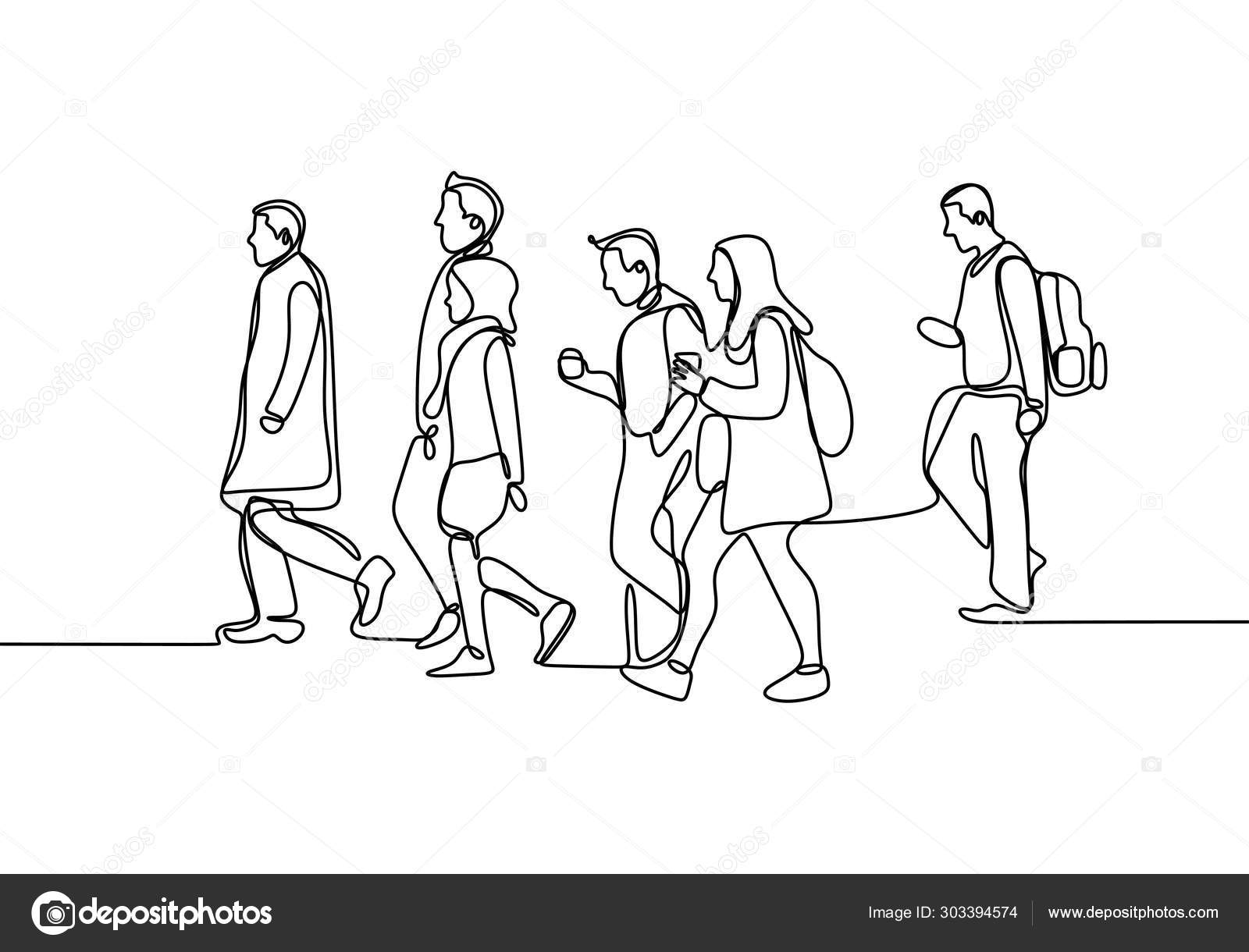Continuous Line Drawing Of People Walking On The Street After Work Time Conteptual Hand Drawn Minimalism Lineart Design Isolated On White Background Vector Illustration Stock Vector C Ngupakarti 303394574