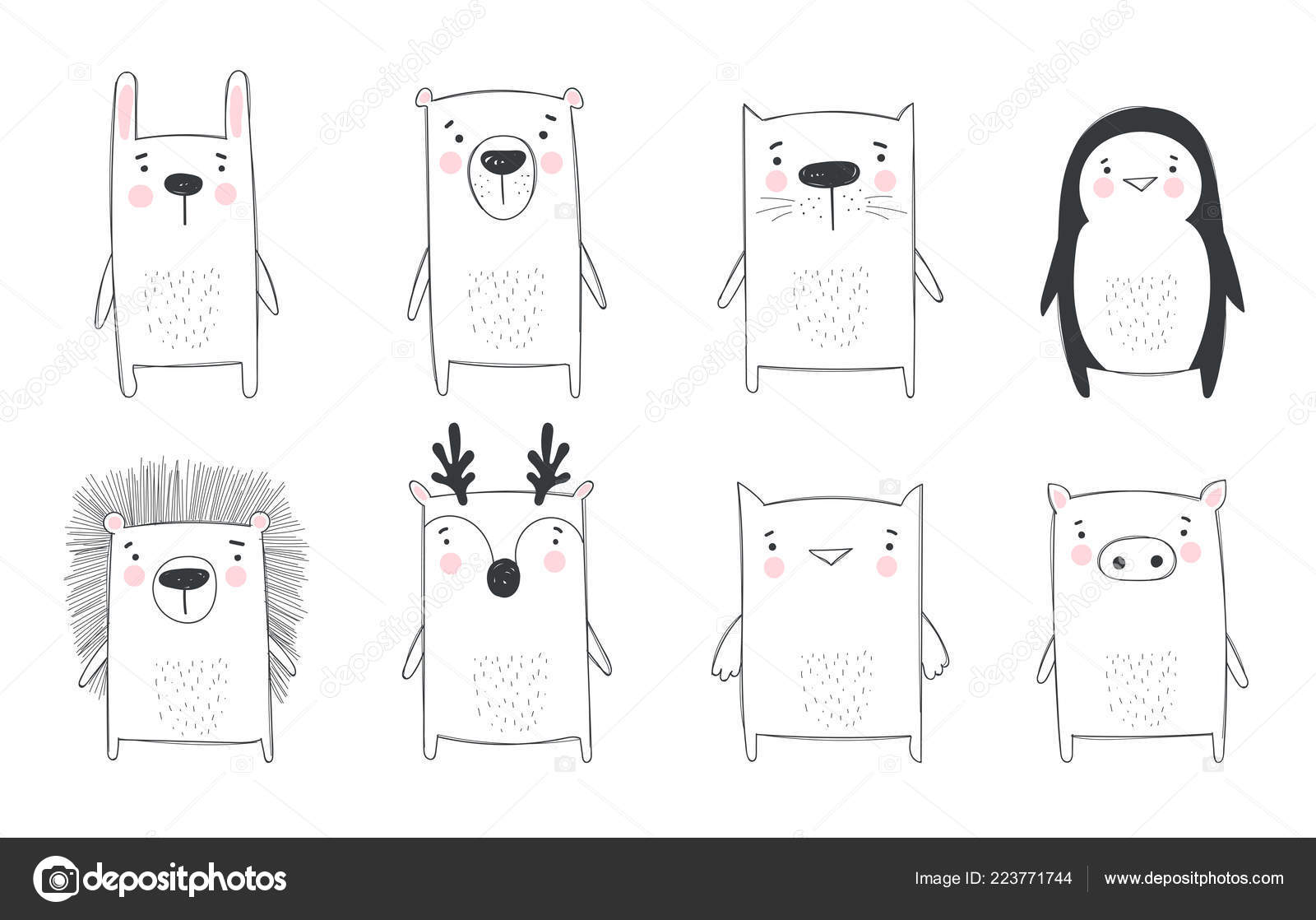Drawings Cute Animal Line Vector Collection Line Drawing Cute Animals Doodle Illustration Winter Holidays Stock Vector C Tiny Selena 223771744