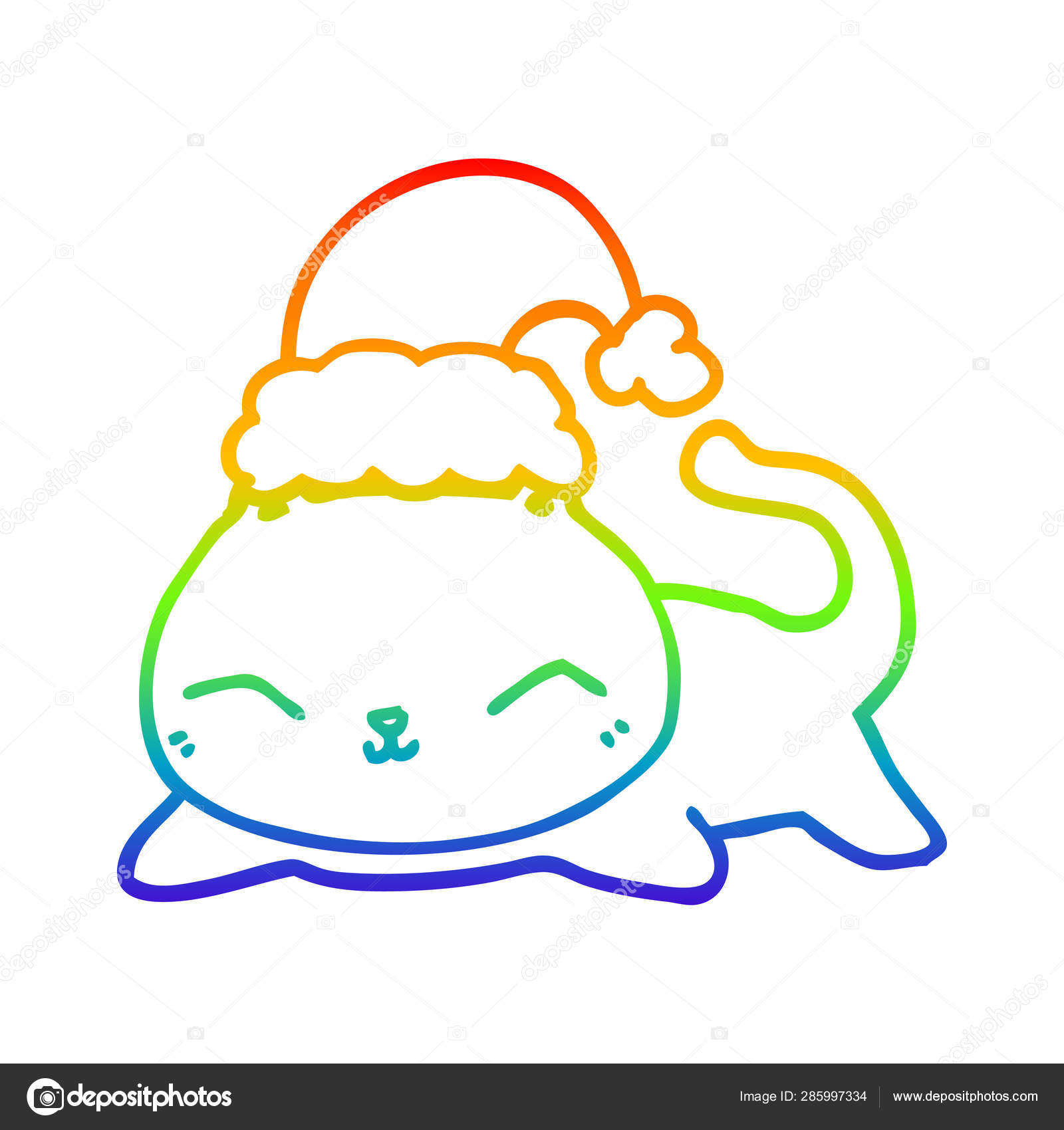 Cold Gradient Line Drawing Cute Cartoon Puppy With Christmas Present And Hat Buy This Stock Vector And Explore Similar Vectors At Adobe Stock Adobe Stock