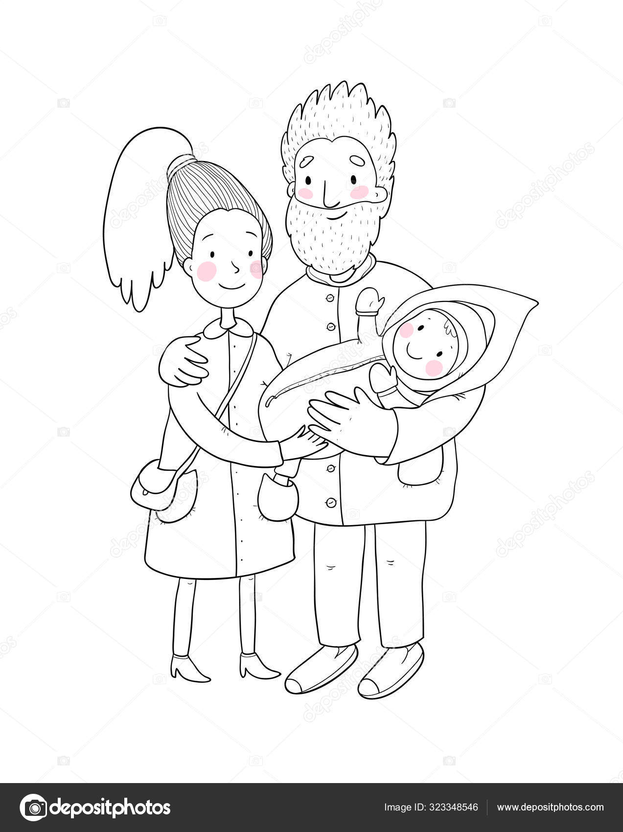 Learn How To Draw A Cute Little Family With This Easy Drawing And Coloring Page For Kids Youtube