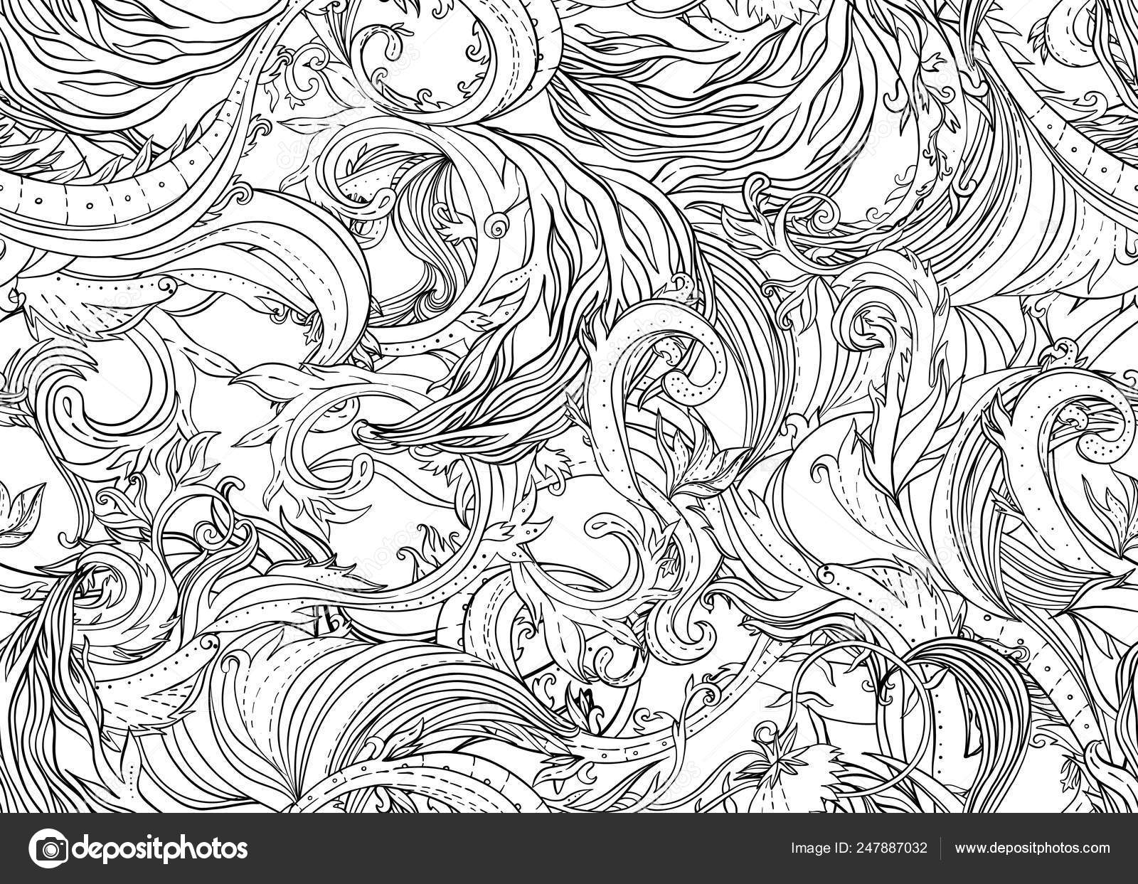 Black Outline Flower Seamless Vector Flower Drawing Flower Outline Floral Embroidery Patterns