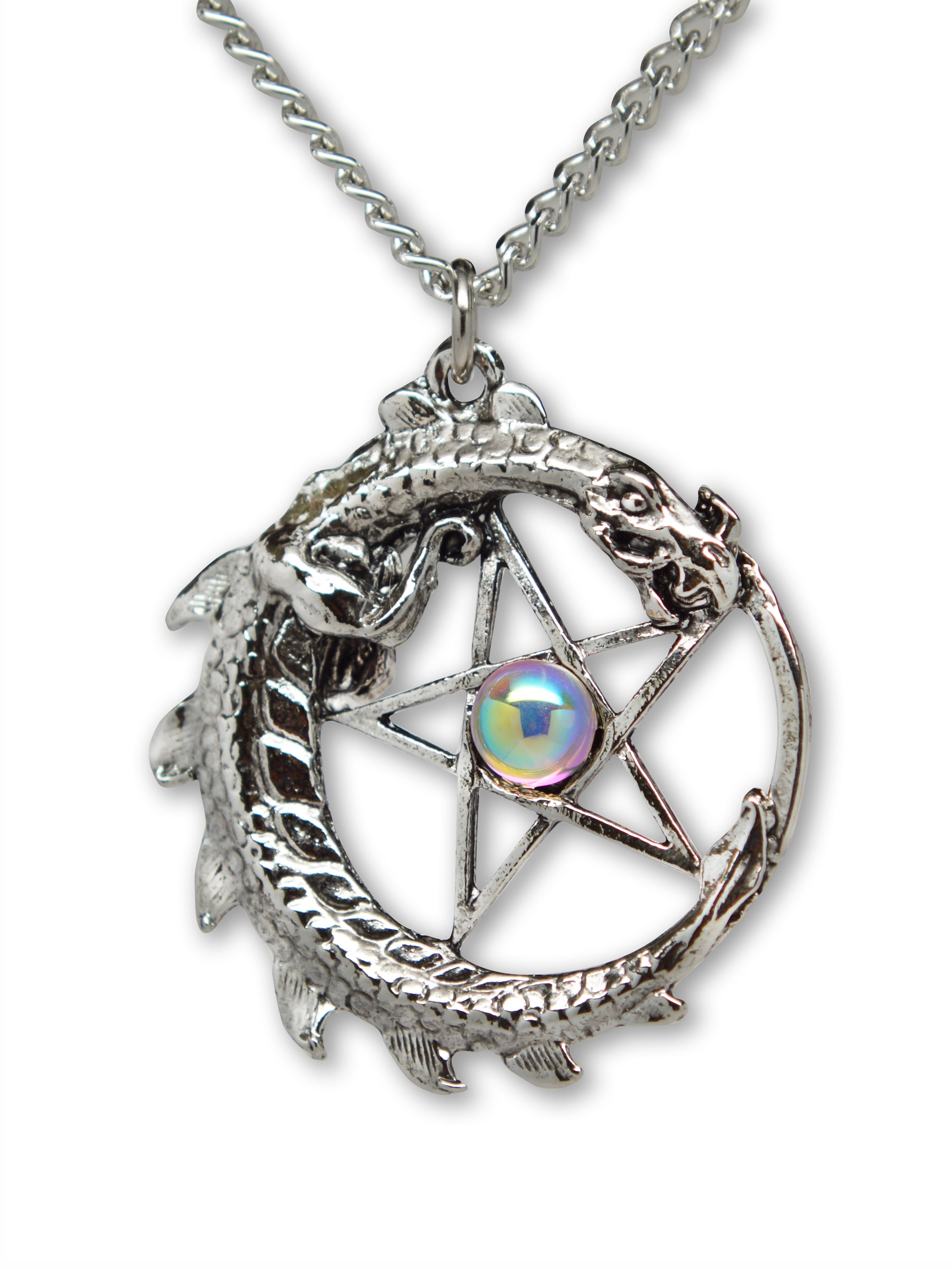 Dragon Encircling Pentacle Necklace W Aurora Borealis Jewel Nk403ab 9 99 Mystic Crypt The Most Unique Hard To Find Items At Ghoulishly Great Prices