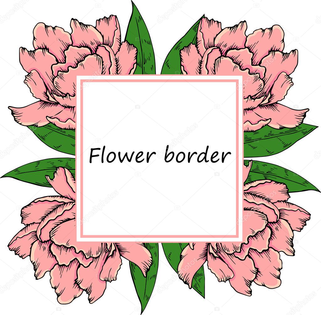 Line Art Handdrawn Border With Flowers Peony Floral Line Art Border On A White Background Coloring Page