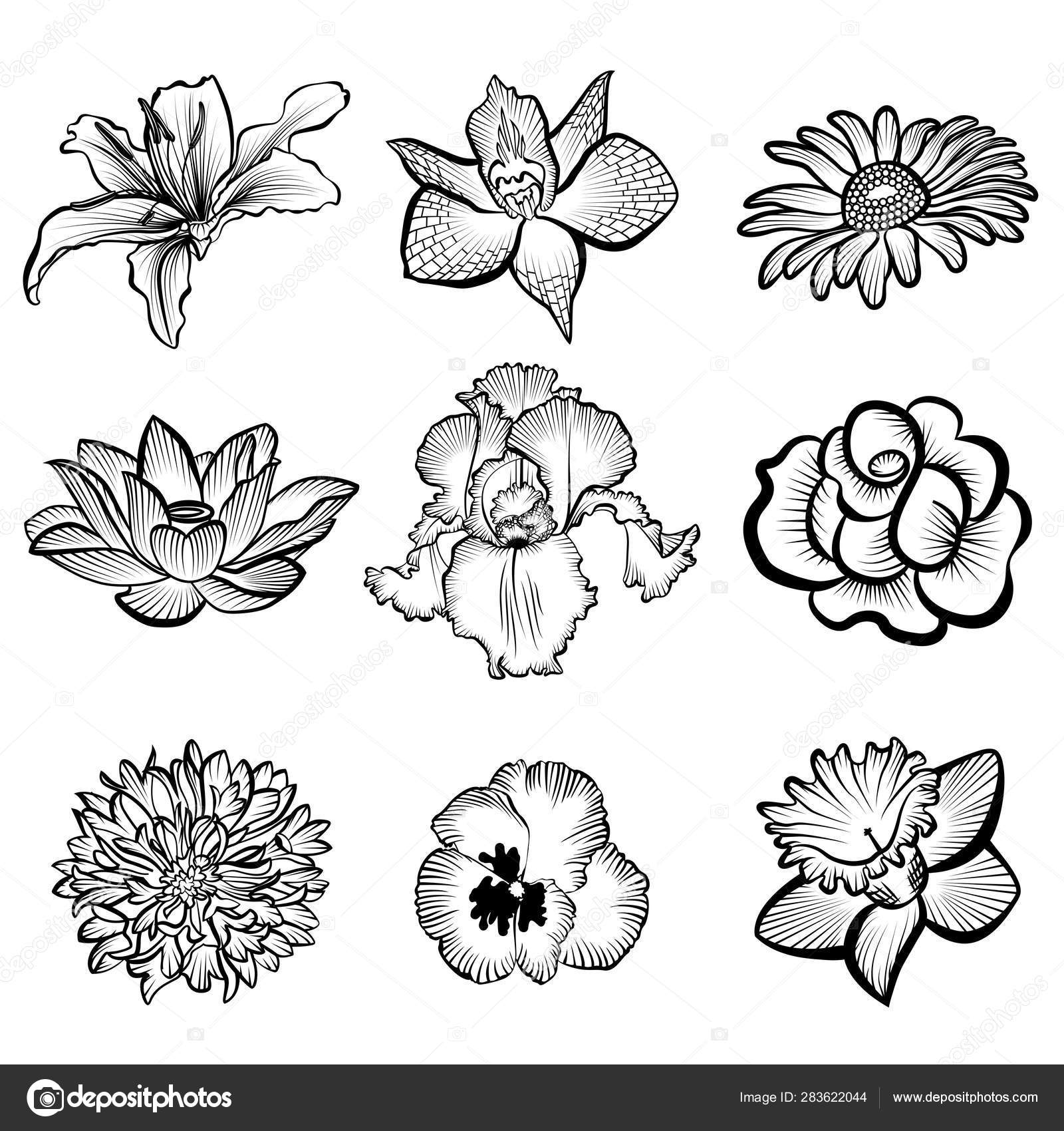 Set Of Floral Elements Sketches Of Flowers And Plants To Create Different Designs Hand Drawn Outline Converted To Vector Stock Illustration Download Image Now Istock