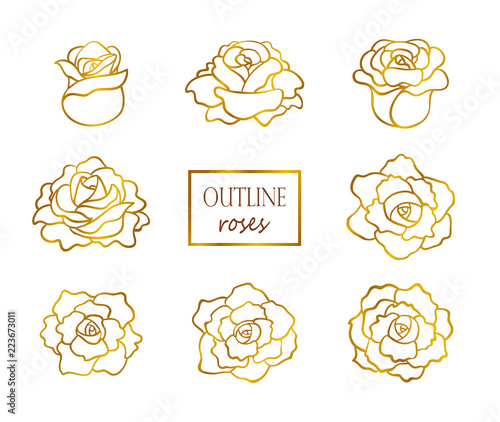 Vector Set Of Outline Golden Roses Side And Top View Buy This Stock Vector And Explore Similar Vectors At Adobe Stock Adobe Stock