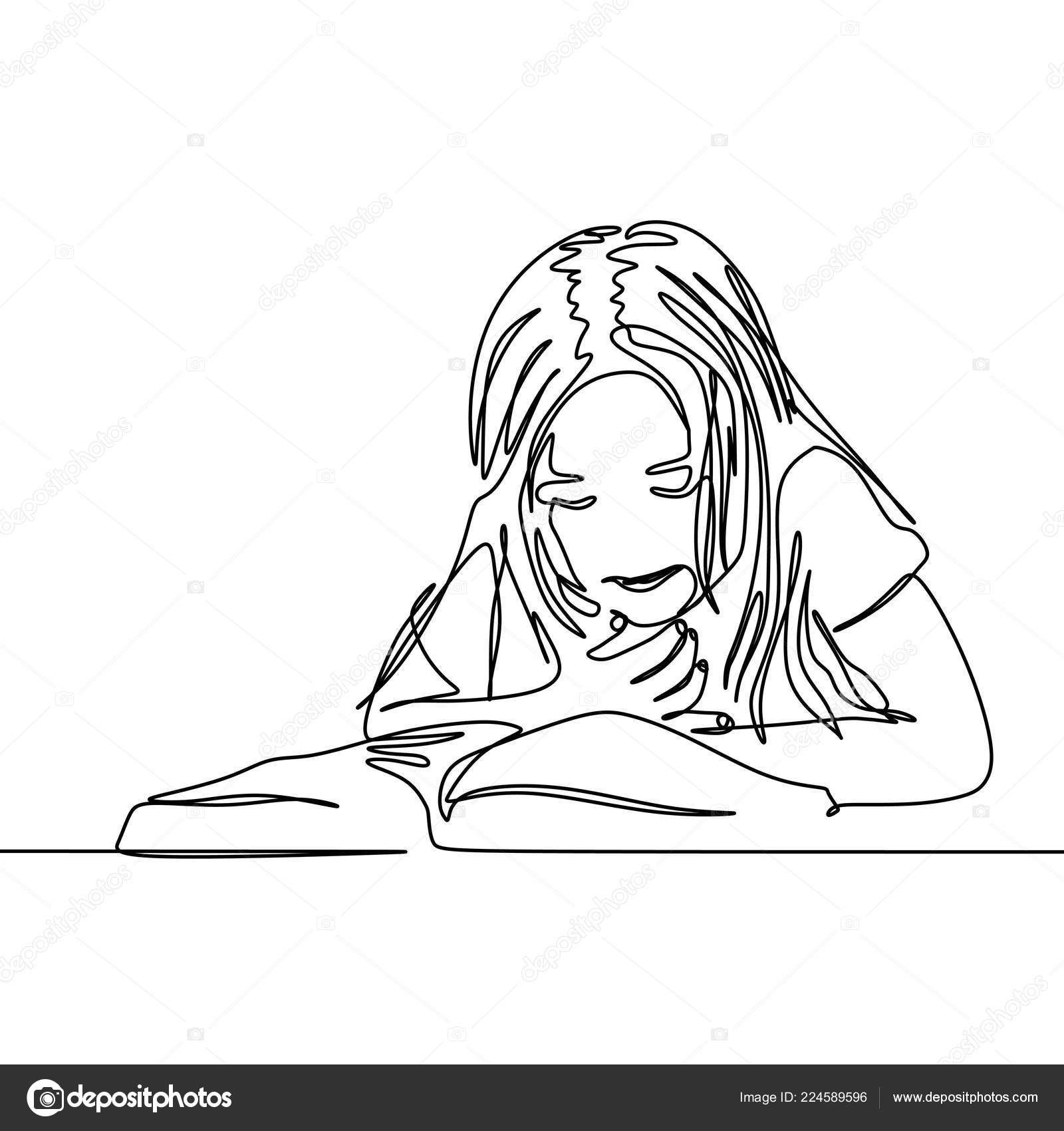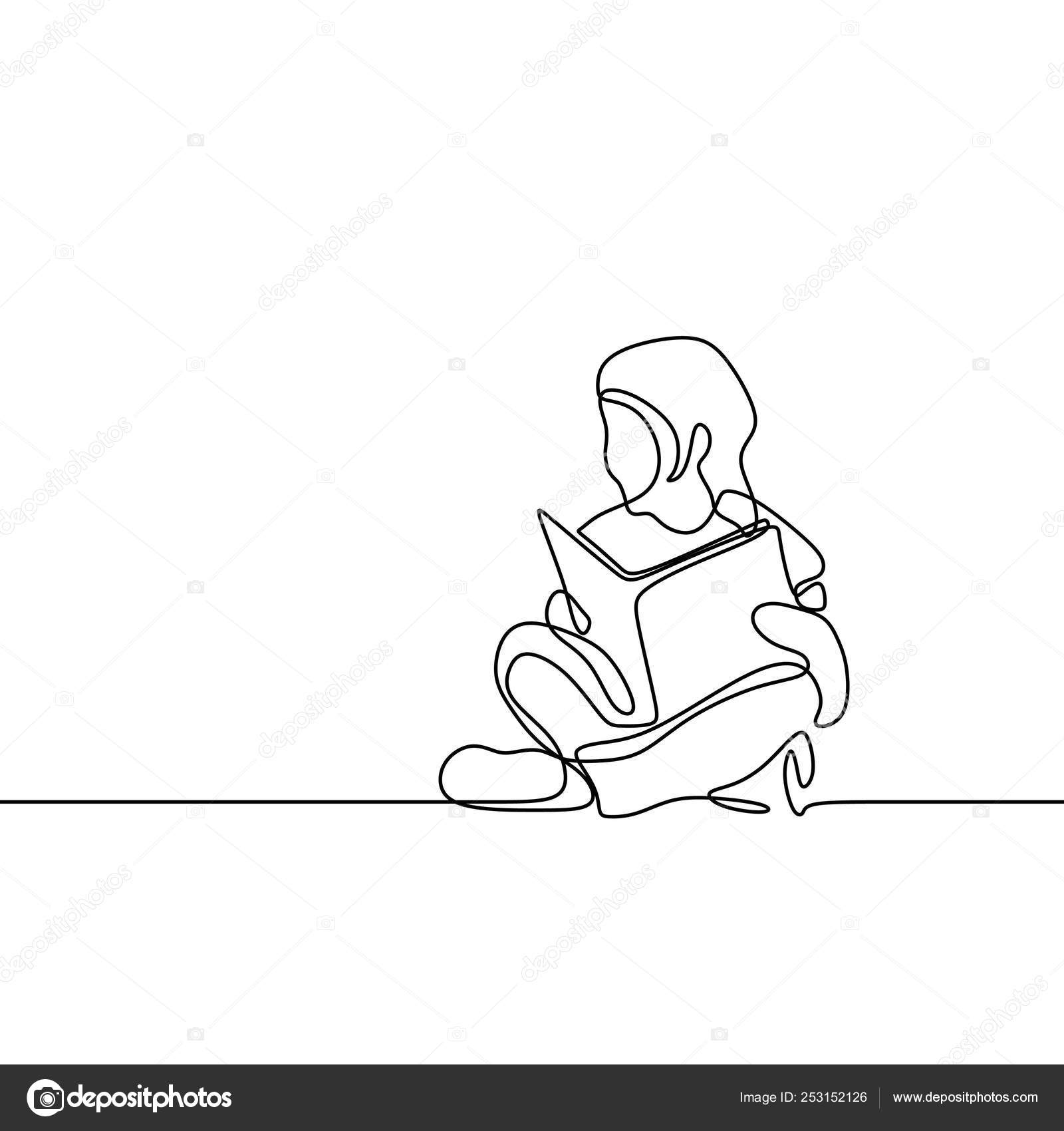 Young Girl Teen Reading Book Continuous Line Drawing Vector Illustration Stock Vector C Ngupakarti 253152126
