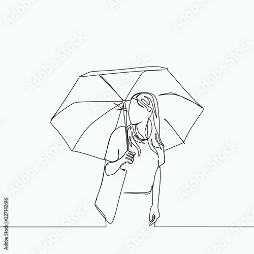 Continuous One Line Drawing Of Woman Holding Umbrella Umbrella Female Isolated Png And Vector With Transparent Background For Free Download