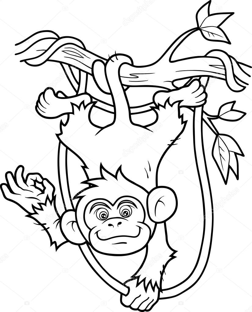 Coloring Pages Little Cute Monkey Is Hanging On The Tree Branch Royalty Free Cliparts Vectors And Stock Illustration Image 57465503