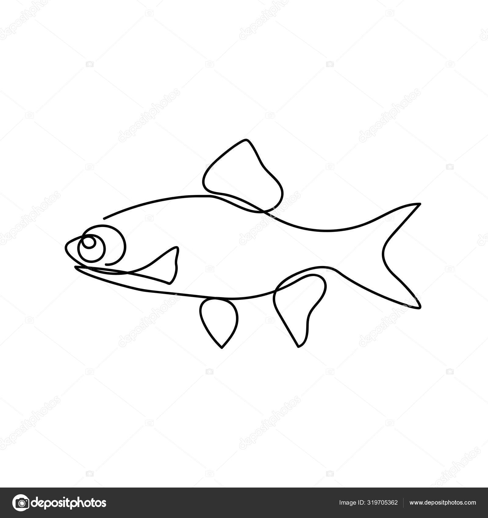Continuous Line Fish With Beautiful Tail Abstract Modern Decoration Logo Vector Illustration One Line Drawing Of Fish Form Fancy Line Art Black And White Trendy Concept For Card Banner Stock Illustration