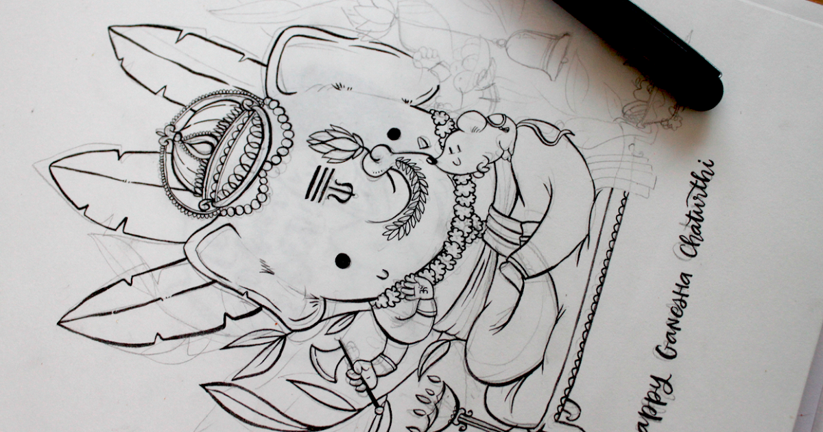 Ganesh Chaturthi Face In No Color Sketch Art Download Free Vectors Clipart Graphics Vector Art