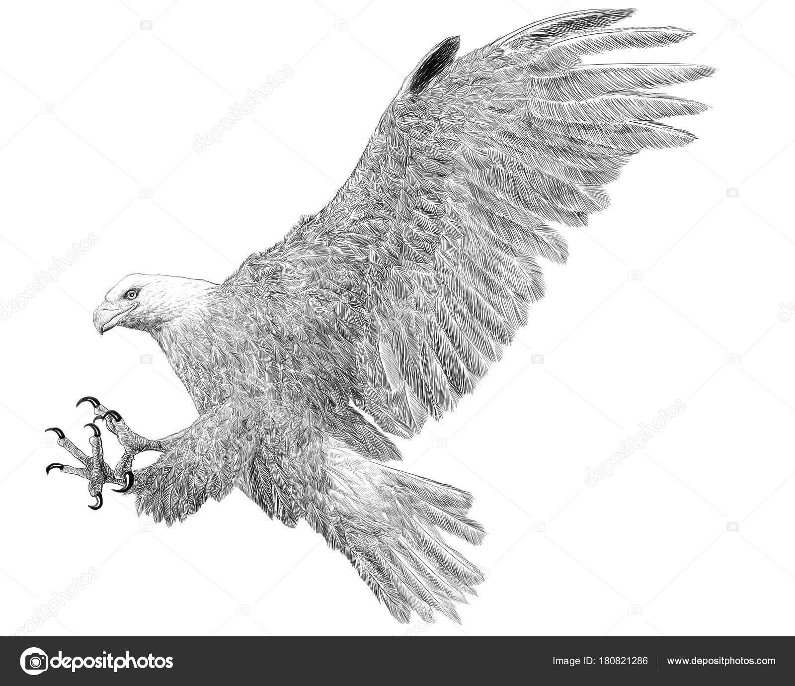 Bald Eagle Landing Attack Hand Draw Sketch Black Line White Stock Photo C Patthana 180821286