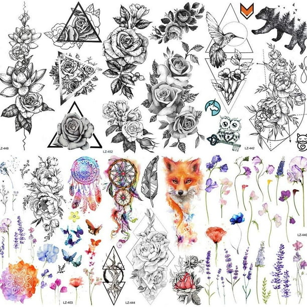 Amazon Com Vantaty 10 Sheets Charm Geometric Rose Peony Style Women Temporary Tattoos For Girls Fake Jewelrys Water Transfer Large 3d Flower Tattoo Sticker For Girls Adults Forearm Wrist Tatoo Paste Beauty