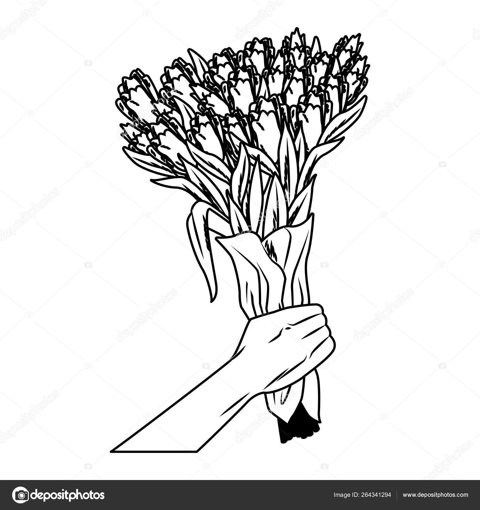 Hand Holding Flowers Bouquet Pop Art In Black And White Stock Vector C Jemastock 264341294