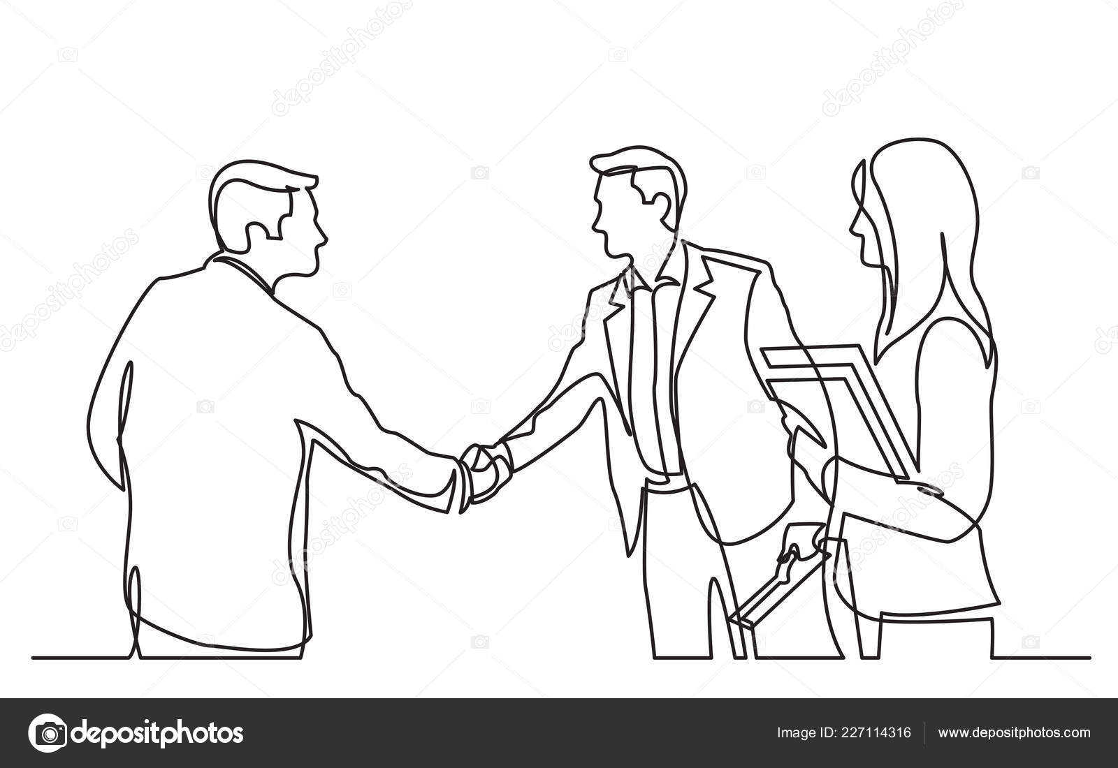One Line Drawing Or Continuous Handshake Businessman Two Smiling Businessmen Shaking Hands Together Shaking Hands To Seal A