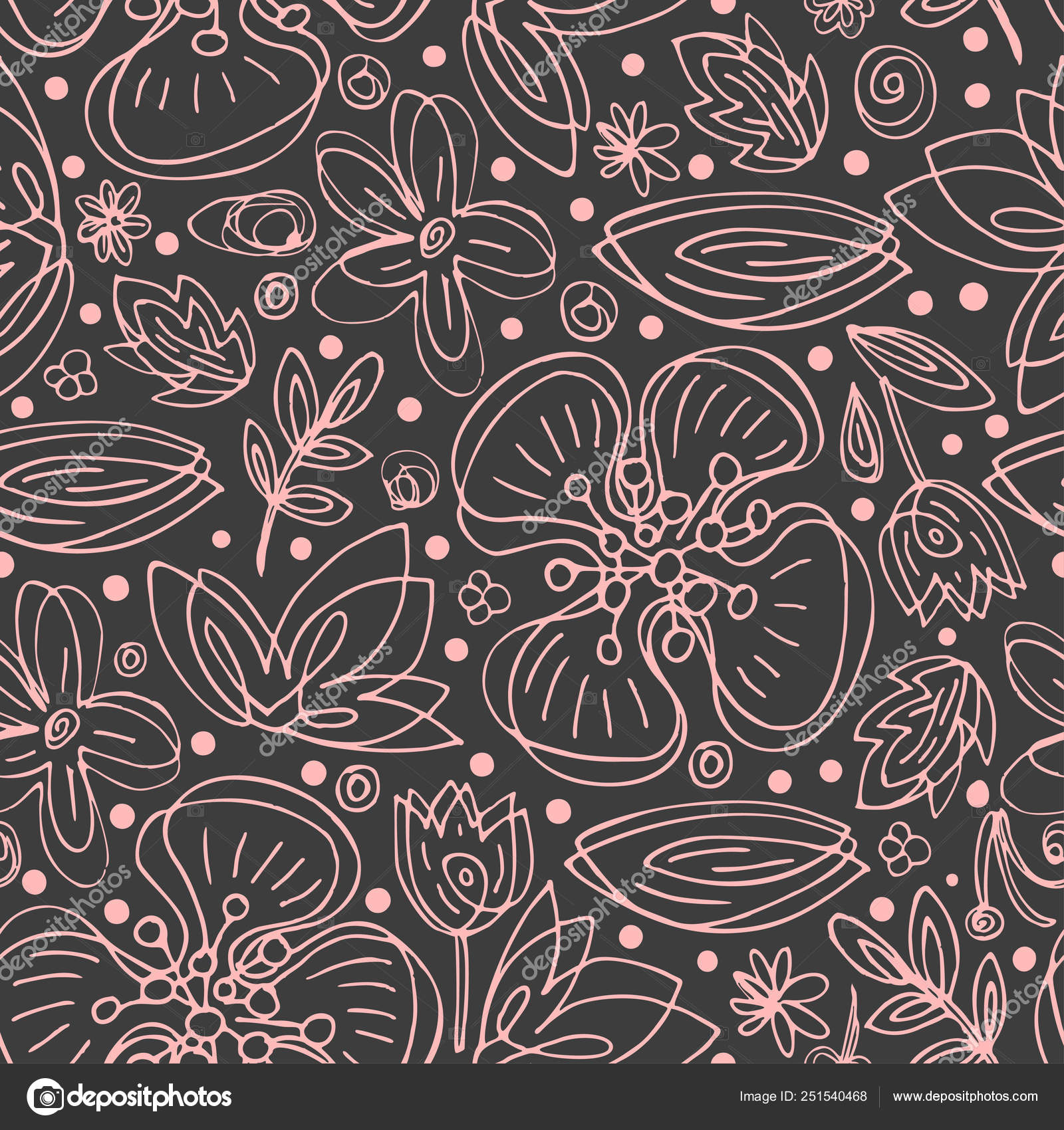 Simple Nature Floral Background Seamless Pattern With Hand Drawn Flowers Line Art Contour Drawing Sketch Style Fashion Design For Your Textile And Fabric Wrapping Any Surface Stock Illustration Download Image Now www.istockphoto.com