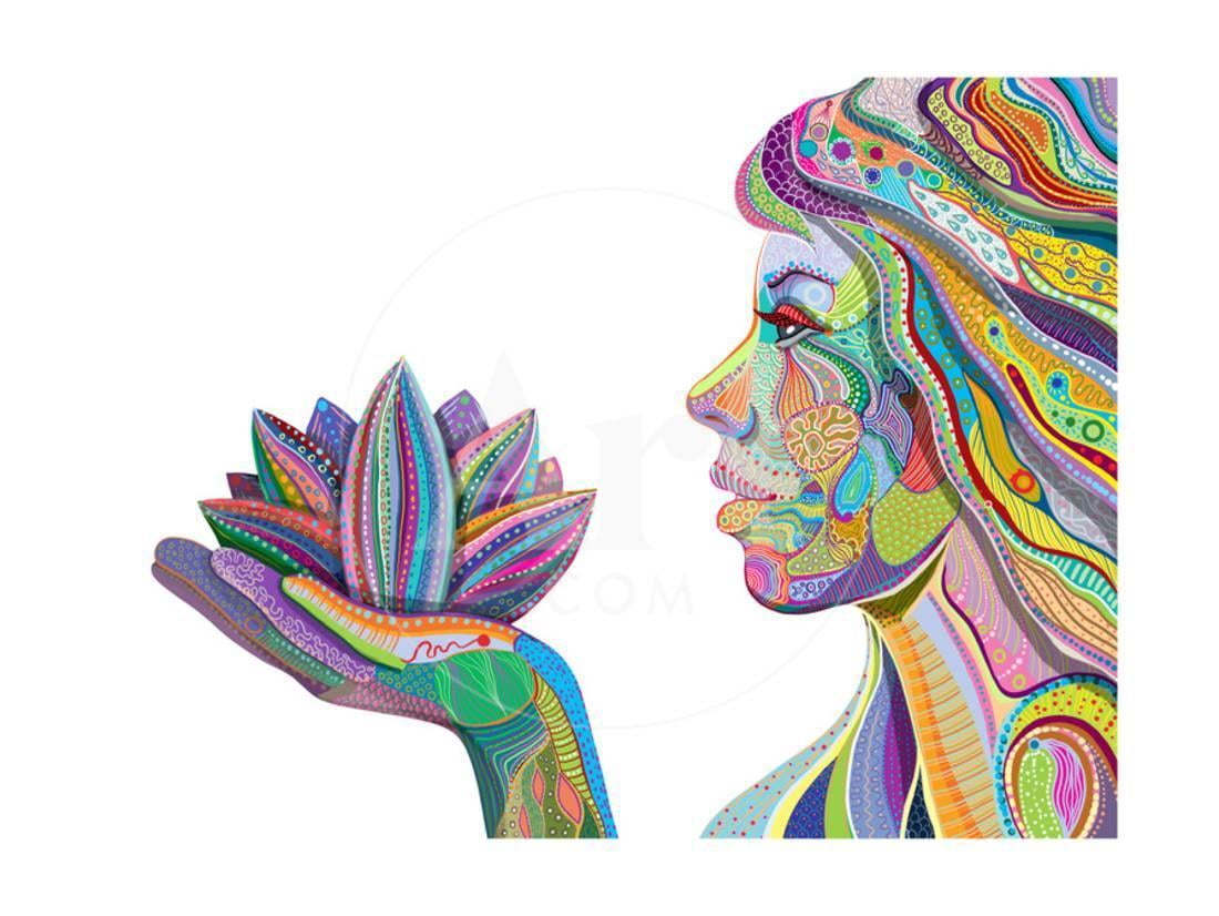 Woman Face With Multicolored Indian Pattern Holding Lotus Flower Side View Digital Painting Print Wall Art By Shooarts Walmart Com Walmart Com