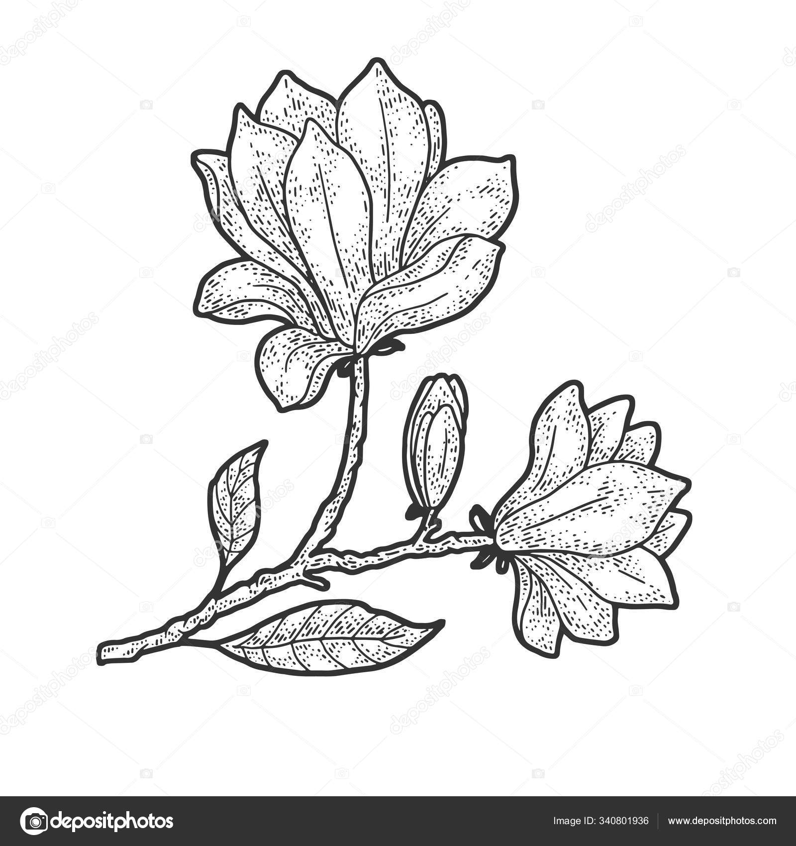 Magnolia Tree Flower Sketch Engraving Vector Illustration T Shirt Apparel Print Design Scratch Board Imitation Black And White Hand Drawn Image Stock Vector C Alexanderpokusay 340801936