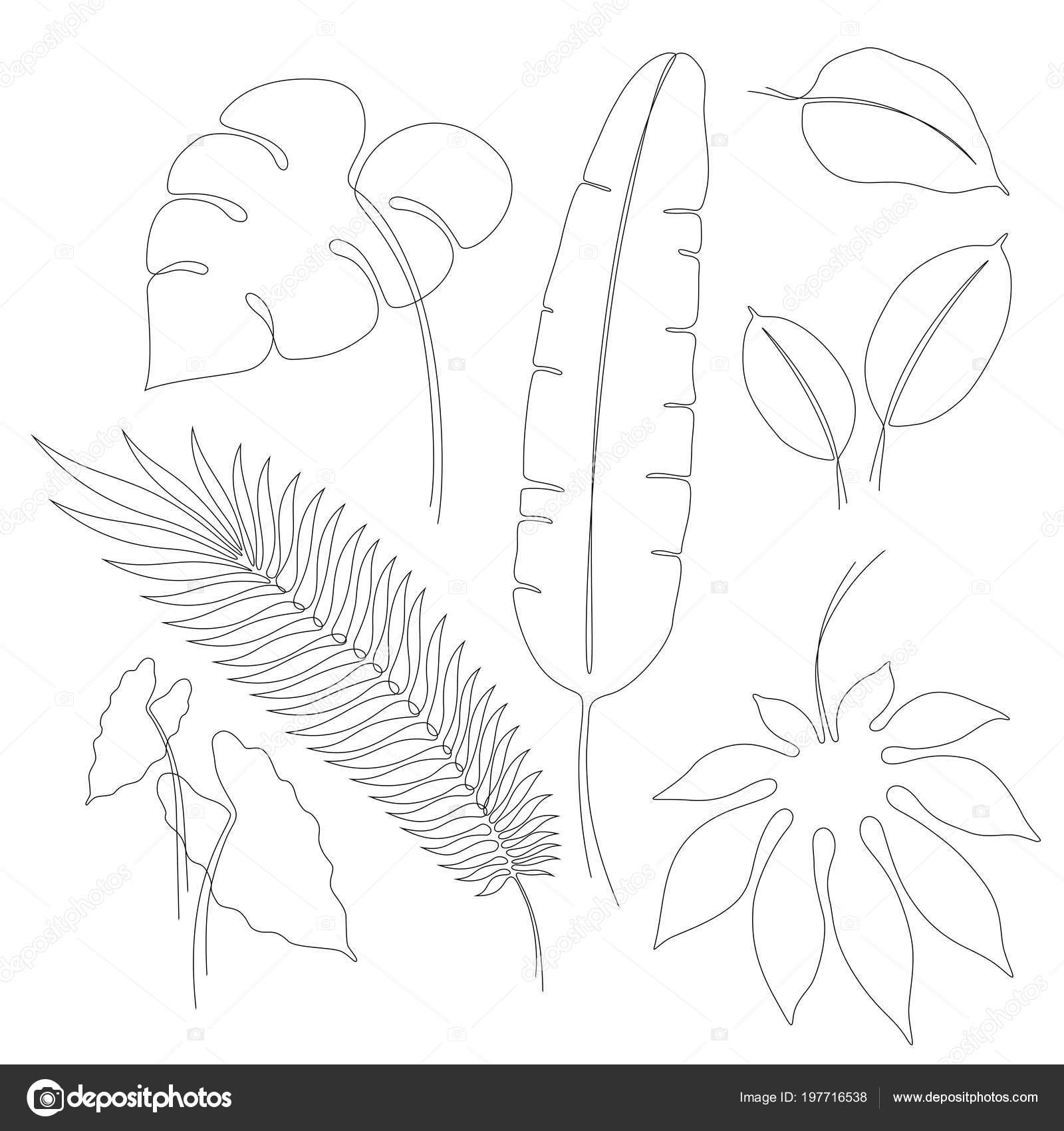 Drawings Leaves Line Continuous Line Drawings Various Tropical Leaves Single Line Vector Leaves Stock Vector C Cortex Projections 197716538