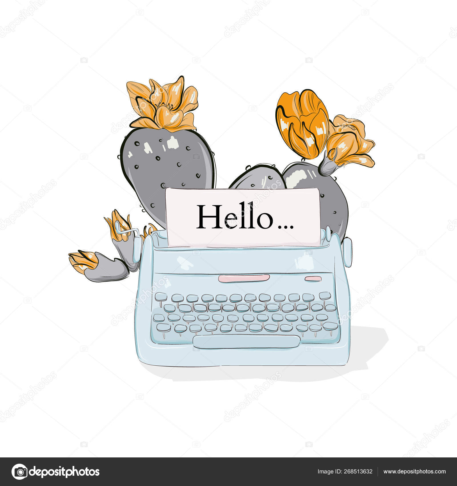 Cactus Typewriter Cute Hand Drawn Print Text Typing Concept With Nature Decoration Flowers And Leaves Cacti Nursery Drawing Sketch With Quote Kids Wall Art Stock Vector C Lu Bondarieva Gmail Com 268513632