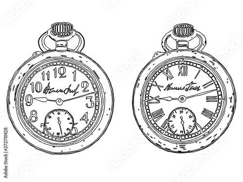Black And White Flat Outline Icon Pocket Watch Isolated On White Royalty Free Cliparts Vectors And Stock Illustration Image 53980060