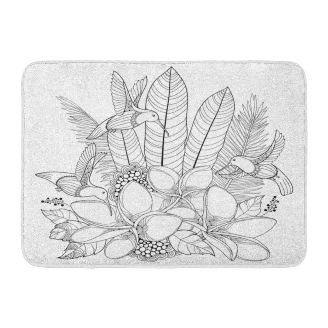 Vector Seamless Pattern With Plumeria Flower And Flying Hummingbird Or Colibri In Contour Style On The White Background Outline Tropical Frangipani And Bird For Summer Design And Coloring Book Wall Mural