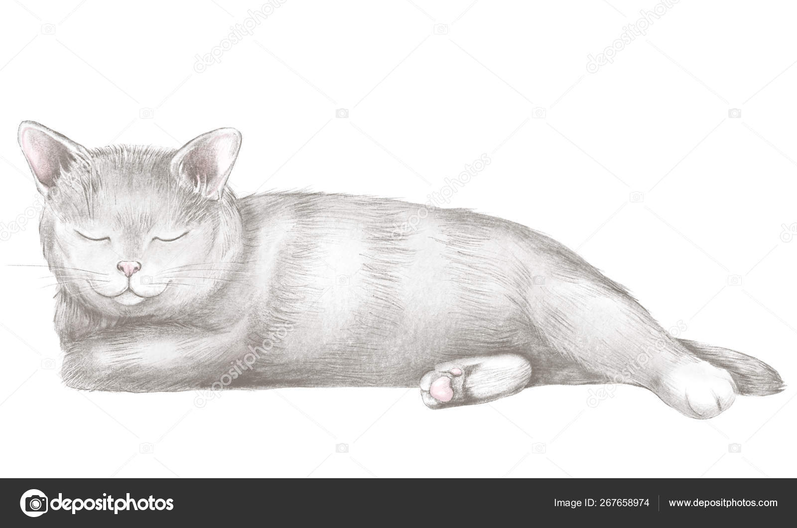 Pencil Drawing With Lying And Sleeping Black Cat Stock Photo C Mimomy 267658974