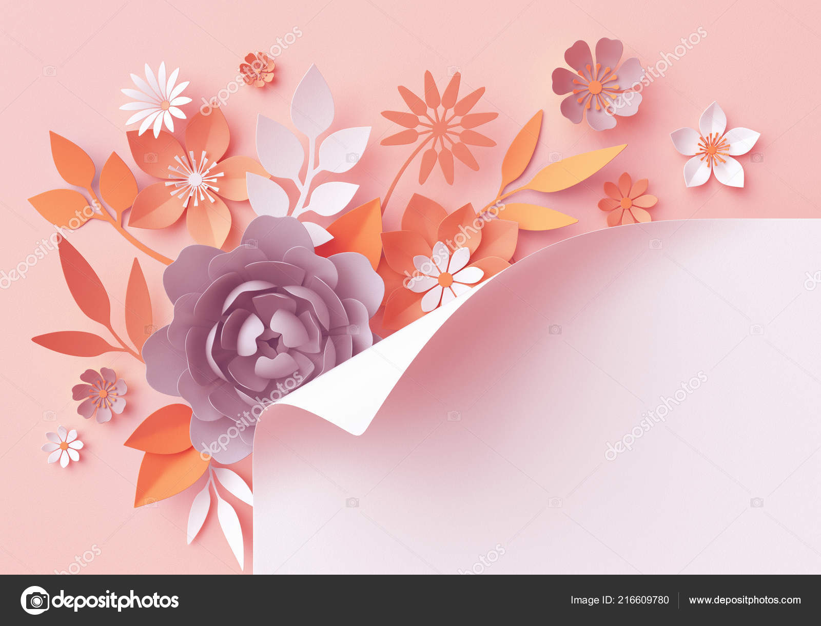 Render Fall Paper Flowers Botanical Background Page Corner Curl Fashion Stock Photo C Wacomka 216609780