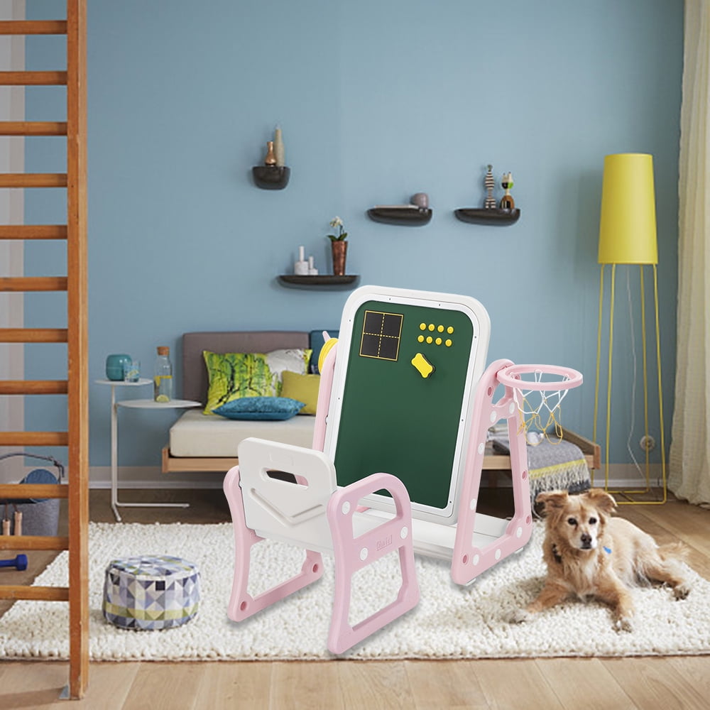 Amazon Com Goujxcy Kids Easel Table And Chair Plastic Children S Table And Chair Drawing Board Set With Shooting Ring For Arts Crafts Drawing Homeschooling And More Gift For Toddler Furniture Decor