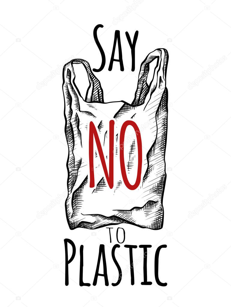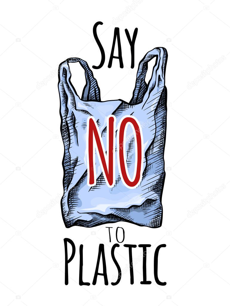 Say No To Plastic Coloring Line Drawing Of A Plastic Bag With Hatching Environmental Pollution Vertical Card Vector Scribble Drawing For Your Creativity Premium Vector In Adobe Illustrator Ai Ai