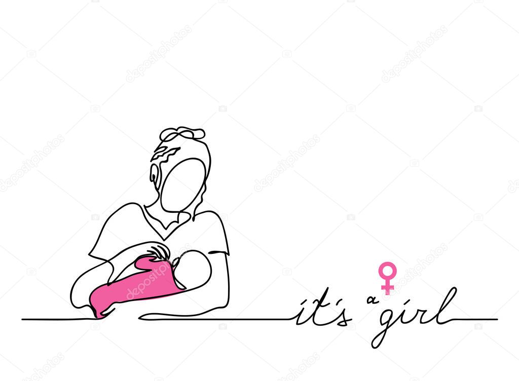 Its A Girl Lettering With Vector Illustration Of Mother With Her Baby One Continuous Line Drawing Simple Minimal Background With Newborn Girl Premium Vector In Adobe Illustrator Ai Ai
