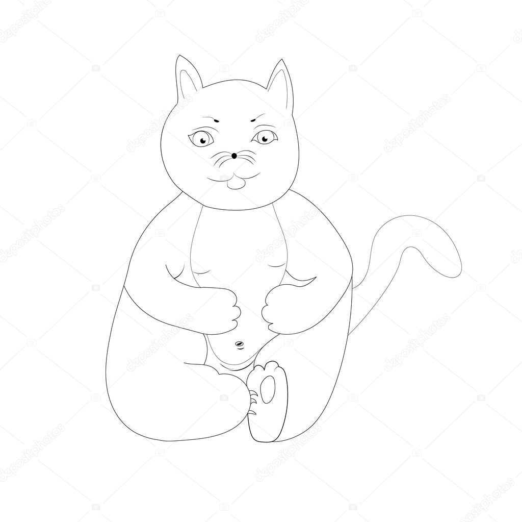 One Big And Clumsy Homely Fat Cat In A Lazy Pose Sits With His Legs Folded On His Belly And Scratches His Heels With His Claws Pupils Can Be Moved Premium