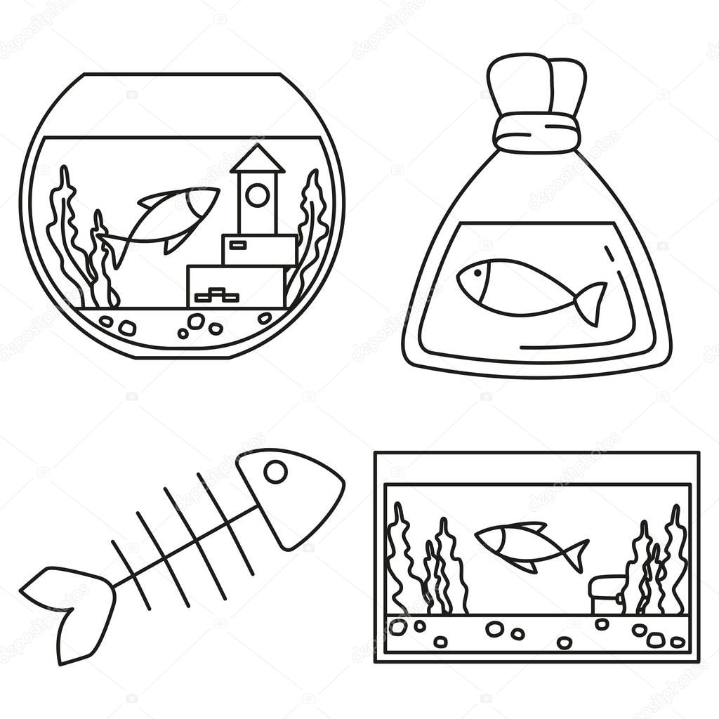 Fish Food Outline Icon Stock Vector Illustration Of Simple 130152658