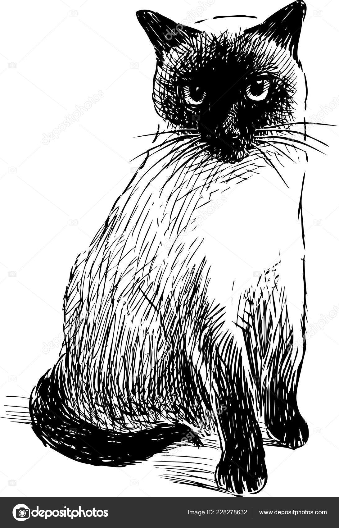 Cute Siamese Cat Cartoon Vector Illustration Motif Set Hand Drawn Isolated Illustration About Housecat Green Illus Siamese Cats Cartoons Vector Cartoon Cat