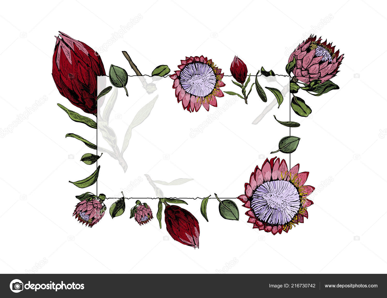 Vector Illustration Of Colorful King Protea Flowers Buds And Leaves Protea South Africa Symbol Isolated On White Background Hand Drawn Colored Stock Vector Image Art Alamy