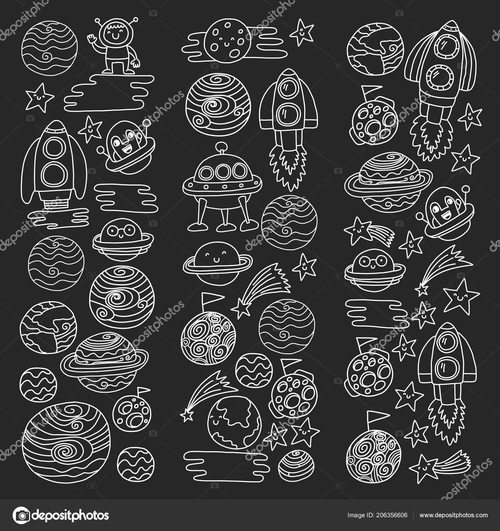 Vector Pattern With Space Icons Doodle Kids Drawing Style Illustration Royalty Free Cliparts Vectors And Stock Illustration Image 105535978