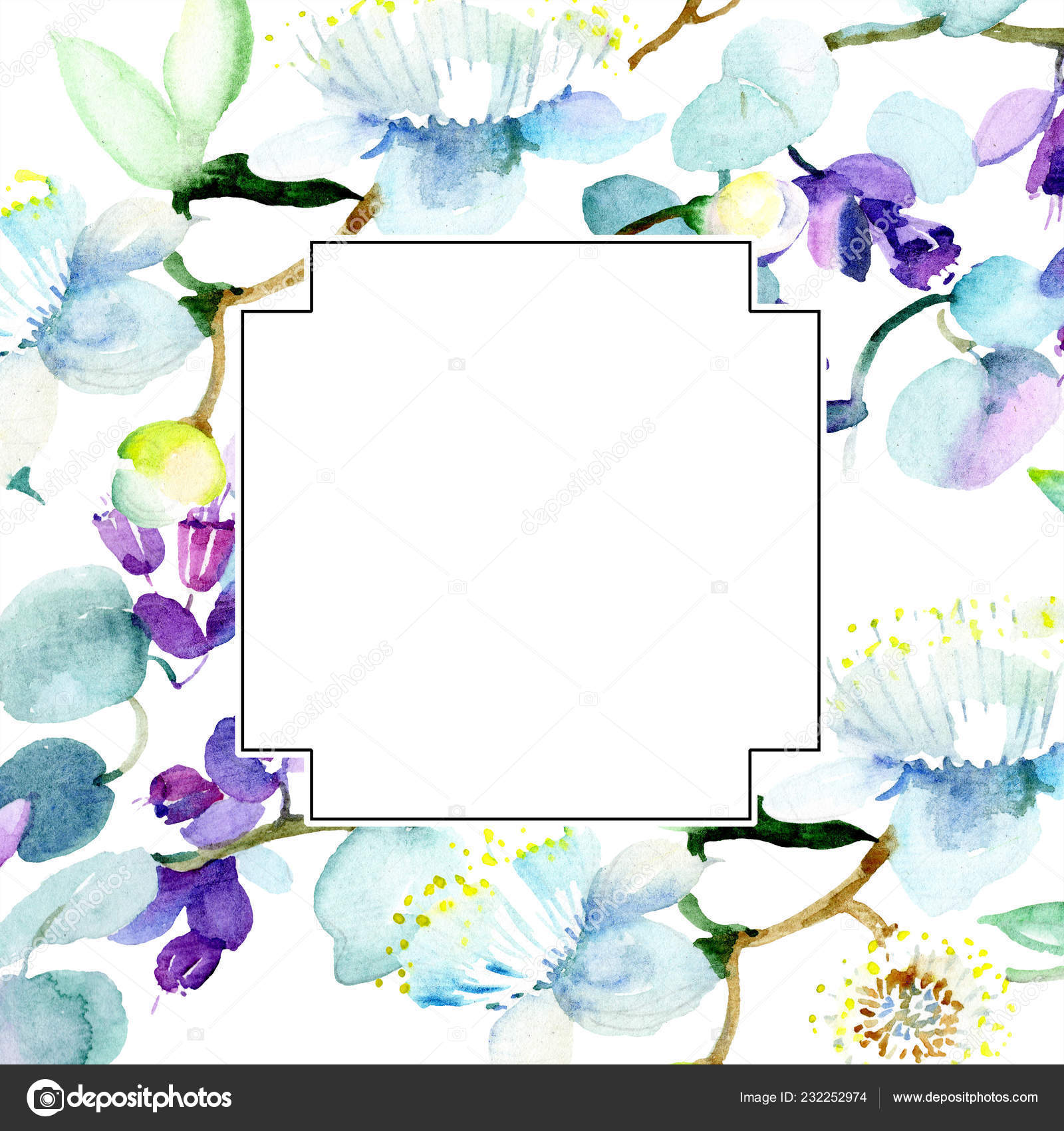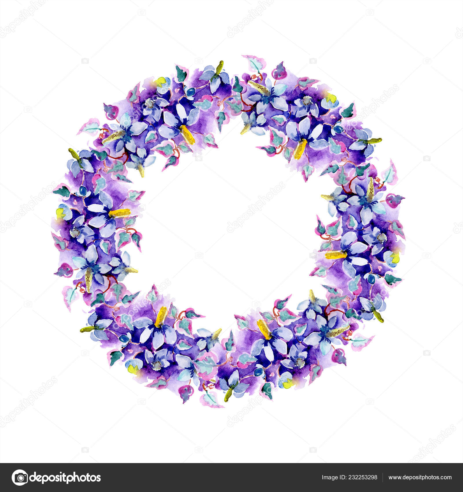 Frame Bouquet Purple Flowers Watercolor Background Illustration Set Watercolour Drawing Stock Photo C Andreyanush 232252724
