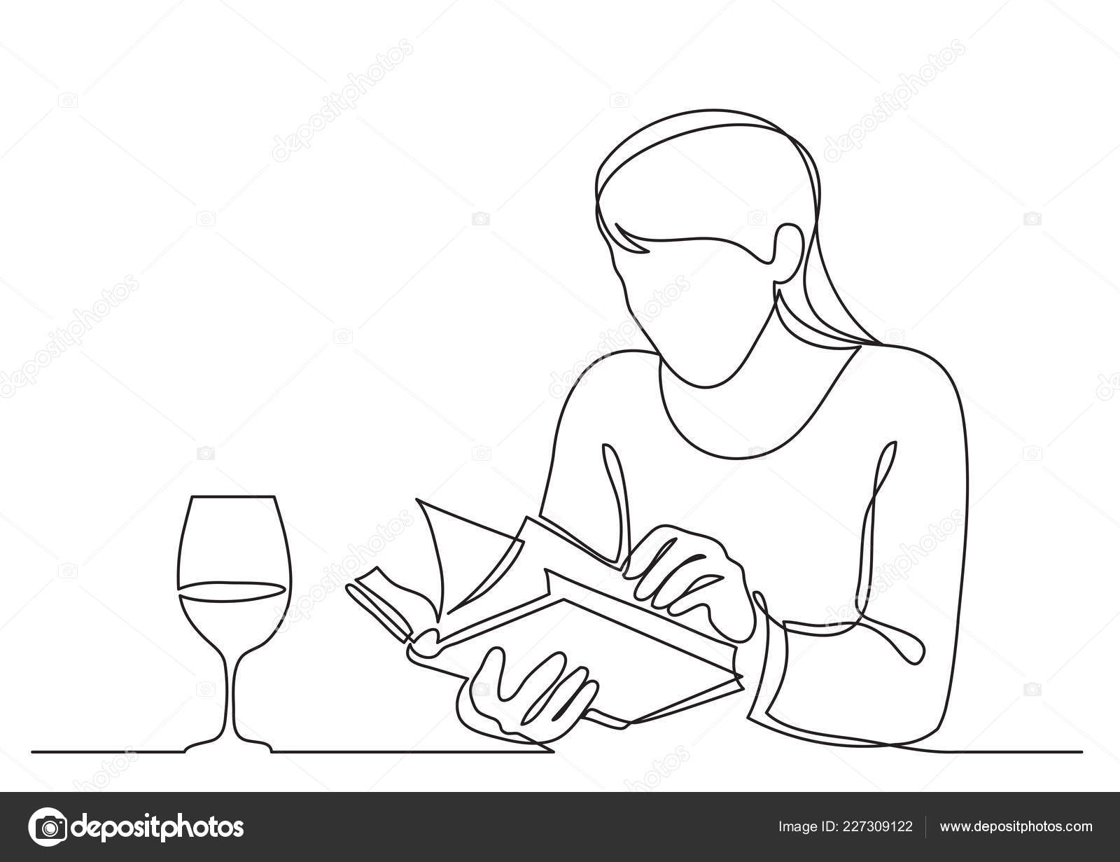 Drawings Woman Drinking Wine Drawing Continuous Line Drawing Woman Drinking Wine Reading Book Stock Vector C One Line Man 227309122